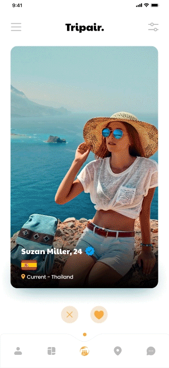 Make finding travel partners simple and fun, not stressful. A familiar swipe interaction supports playful, intuitive exploration.