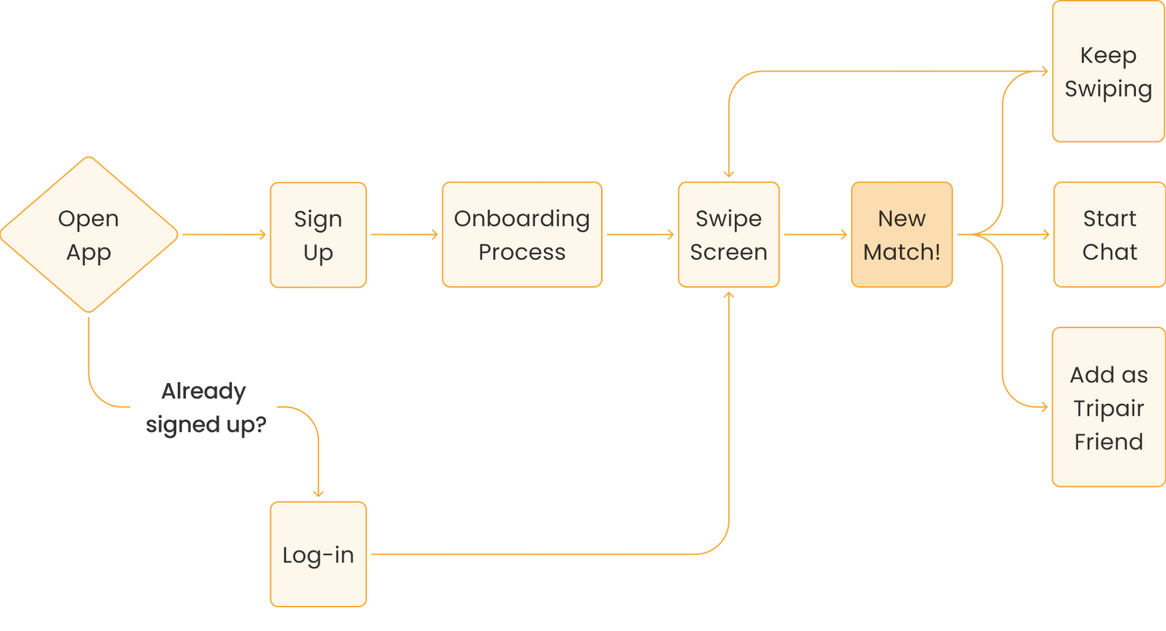 These groups approach connection differently, but all share a desire for meaningful, context-aware interactions. This shaped how we structured Tripair’s experience.